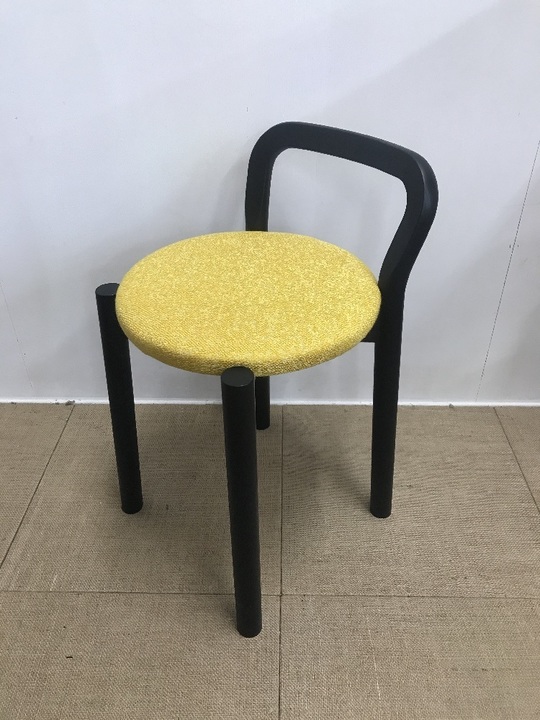 【カウンターチェアの木部の座面をウレタンを貼って座り心地を良くし、布地を張り雰囲気をがらりと変えました。使う用途に合わせ脚カットをし、椅子の高さも変更しました。】